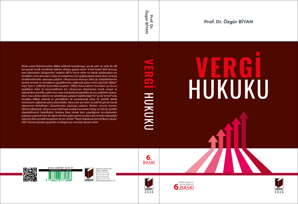 Vergi Hukuku başlıklı kitabın yeni baskısı Mart 2026 itibariyle Adalet Yayınevinden yayınlandı. Bir önceki baskıdan bu yana gerçekleşen kanuni düzenlemeler (7550, 7555 ve 7571 Sayılı Kanun Değişiklikleri) ilave edilerek güncellediğim çalışmayı aynı zamanda gözden geçirerek revize işlemlerini tamamladım. Çeşitli üniversitelerde ders kitabı olarak okutulan çalışmaya ilişkin öneri ve eleştirileri dikkate alarak yenilediğimiz çalışmamızın yeni baskısının okurlara ve öğrencilere faydalı olmasını dilerim.